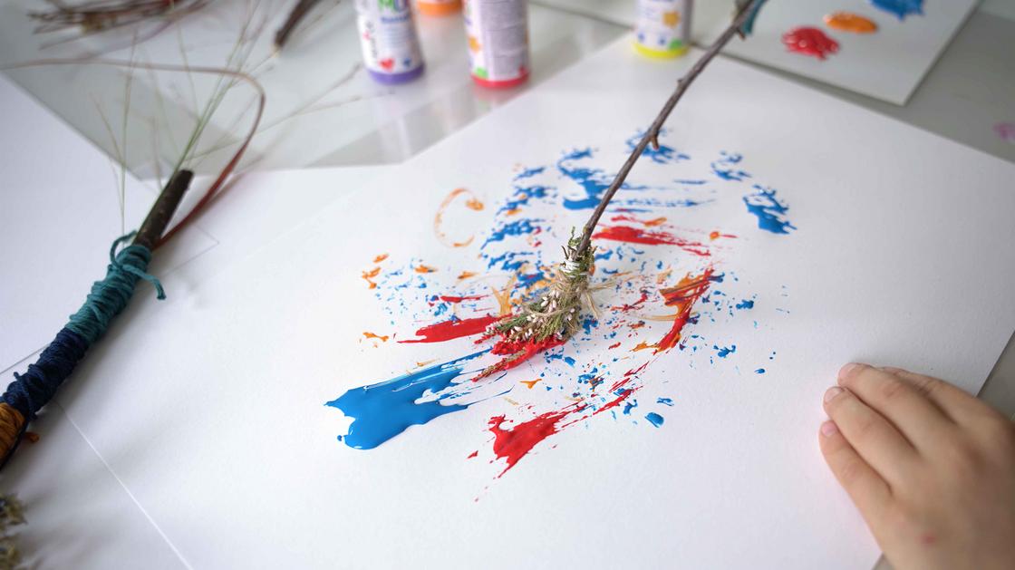 Farbexperimente mit selbst gebastelten Naturpinseln