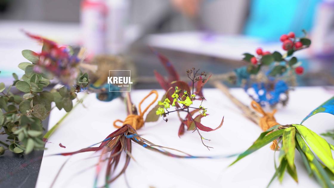 Jetzt wird´s bunt: MUCKI Bastelfarbe trifft auf Zweige und Blüten