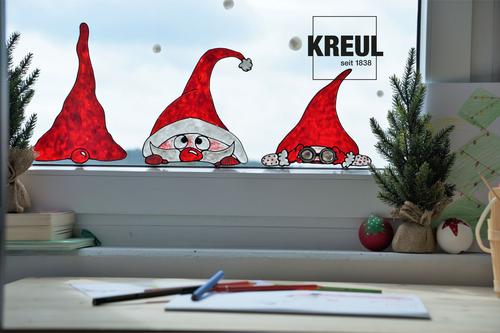 Neugierige Weihnachtswichtel mit KREUL Window Color